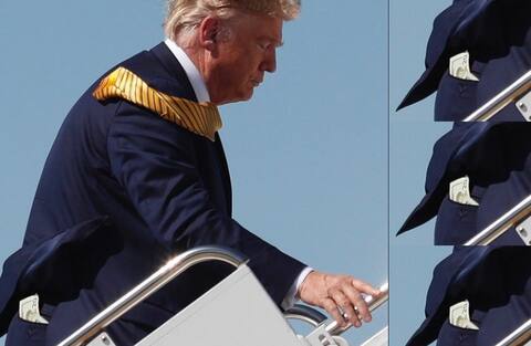 ওয়াশিংটন: বিমানের সিঁড়ি বেয়ে উপরে উঠছেন মার্কিন যুক্তরাষ্ট্রের প্রেসিডেন্ট ডোনাল্ড ট্রাম্প। সেই মুহূর্তের এক ছবি এখন সোশ্যাল মিডিয়ায় ভাইরাল। বিশ্বব্যাপী প্রেসিডেন্ট ট্রাম্পের এই ছবি নিয়ে চর্চা চলছে। কারণ, এই ছবিতে দেখা যাচ্ছে ট্রাম্পের ব্যাক পকেট থেকে উঁকি দিচ্ছে ডলার। তাহলে কী মার্কিন প্রেসিডেন্ট ওয়ালেট ব্যবহার করেন না? উত্তর, আজ্ঞে হ্যাঁ, তিনি ওয়ালেট ব্যবহার করেন না। ডোনাল্ড ট্রাম্প কোনও ওয়ালেট ব্যবহার করেন না। আর সেকথা নিজেই শিকার করলেন ডোনাল্ড ট্রাম্প।