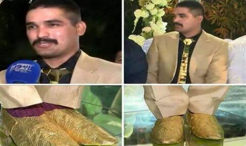 পায়ে সোনার জুতো, গলায় সোনার টাই, ২৫ লাখ টাকা দামের পোশাক পরে বিয়ে করলেন পাকিস্তানের এই পাত্র
