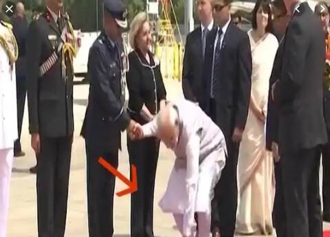 বিমানবন্দরে পুষ্প স্তবক থেকে পড়ে যাওয়া পাতা কুড়িয়ে নিলেন মোদি, প্রশংসা নেটিজেনদের