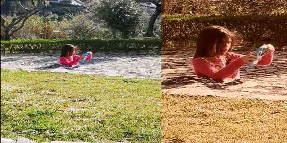 ছবিটি জুম করলেই দেখা যাবে, সবুজ ঘাসের পাশে দেওয়ালের আস্তরণ যেখানে শুরু হয়েছে, ঠিক সেখানেই বাচ্চাটির ছায়া পড়েছে। আর খতিয়ে দেখলেই মালুম হবে সবুজ ঘাসের আস্তরণ ও রাস্তা একই উচ্চতায় রয়েছে। আর কিছুটা দূরের রাস্তার ধারে থাকা গাছগুলি রয়েছে তার থেকে বেশি উচ্চতায়। যাতেই বোঝা যাবে, রাস্তার ধারে দেওয়ালে আসলে হেলান দিয়ে দাঁড়িয়ে নিজের ছবি তুলছে বাচ্চা মেয়েটি। কিন্তু ক্যামেরার কারসাজিতে একঝলক দেখে তা বোঝার উপায় নেই।