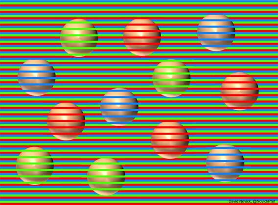 কম্পিউটার ও ইনফরমেশন সায়েন্স ইঞ্জিনিয়ার ডেভিড নোভিক নতুন অপটিক্যাল ইলিউশনটি বানিয়েছেন। ছবিটি ভাইরাল হয়েছে টুইটারে। যেখনে দেখা যাচ্ছে বারোটি রঙিন বৃত্ত। এক নজরে দেখলে সবুজ, লাল, বেগুনি রঙের বৃত্তই চোখে পড়বে। কিন্তু মজা লুকিয়ে সেখানেই। যদি ঠিক করে দেখেন, দেখবেন ১২টি বৃত্তই একই রঙের, হাল্কা বাদামি। অথচ এক ঝলকে বোঝার উপায় নেই তা।