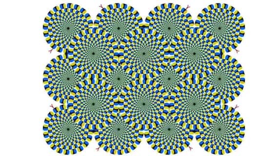 এই ছবিতে যেমন অনেকে ঘূর্ণায়মাণ এই চাকতির গুলির মধ্য থেকে সাপও খুঁজে পেয়েছেন। অনেকে আবার শুধু দেখেছেন যে ডিস্কগুলি কেবলমাত্র ঘুরছে। অধ্যাপক আকিয়োশি কিতাওকা ২০০৩ সালে এই অপটিকাল ইলিউশনটি তৈরি করেছিলেন। ছবিটি কিন্তু আদতে স্থির। তবে চোখে দেখা অনুভূতির ওপর ভিত্তি করে মাইক্রোস্যাকাডিক ফ্রিকোয়েন্সির জন্য এমনটা হয়। কিন্তু বাস্তবে পুরো ছবিটাই স্থির।
