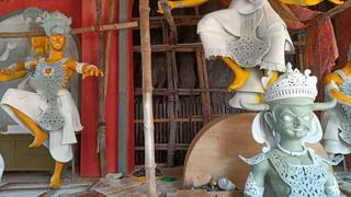 তাই যাত্রার বাজার পড়েছে বহুদিন। যাও একটু আধটু কাজ হত তাতেও বাধ সেধেছে করোনা। তবে সেসব পুরনো গল্পের প্রেক্ষাপট নিয়েই হাজির এই পুজো মণ্ডপ।