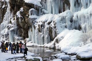 পাহাড়ের দেওয়ালেও যে জলের আস্তরণ ছিল, সেটাও দমে বরফ হয়ে গিয়েছে। জমে গিয়েছে ঝরনা থেকে তৈরি হওয়া নদীটাও।