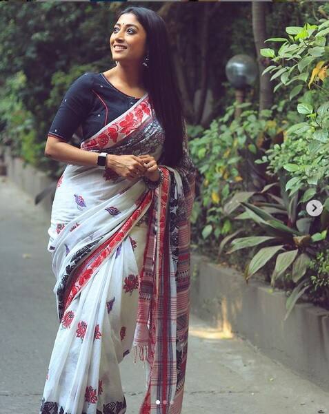 শান্তিপুরী শাড়িতে সনাতনী পাওলি