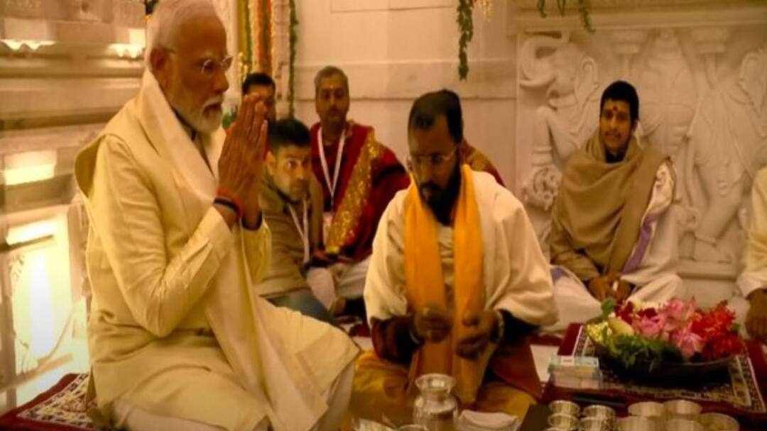 দীর্ঘ প্রতীক্ষার অবসান। অযোধ্যায় রামমন্দিরের উদ্বোধন করে রামলালার প্রাণ প্রতিষ্ঠা করলেন প্রধানমন্ত্রী নরেন্দ্র মোদি। ছবি - এএনআই