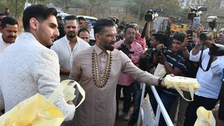 সাত পাকে বাঁধা কে এল রাহুল ও আথিয়া শেট্টি। বিয়ের অনুষ্ঠান শেষে সংবাদমাধ্যমের সামনে ছেলেকে নিয়ে হাজির সুনীল শেট্টি।