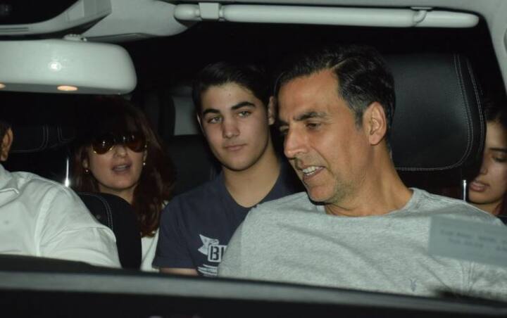 গাড়িতে অক্ষয়ের ছেলে আরভ। আরভের বয়স ১৫। তবে ৫ বছরের মেয়ে নিতারাকে দেখা যাচ্ছে না।