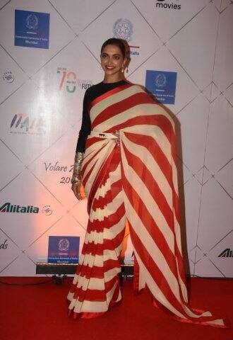 দেখুন লাল সাদা শাড়িতে দীপিকাকে