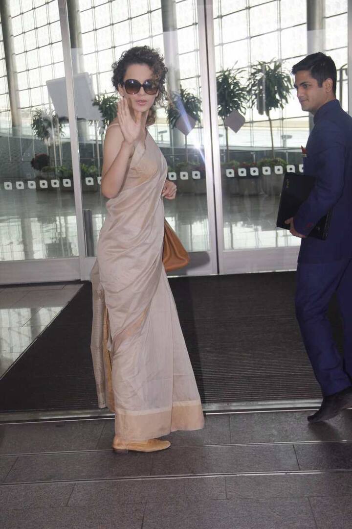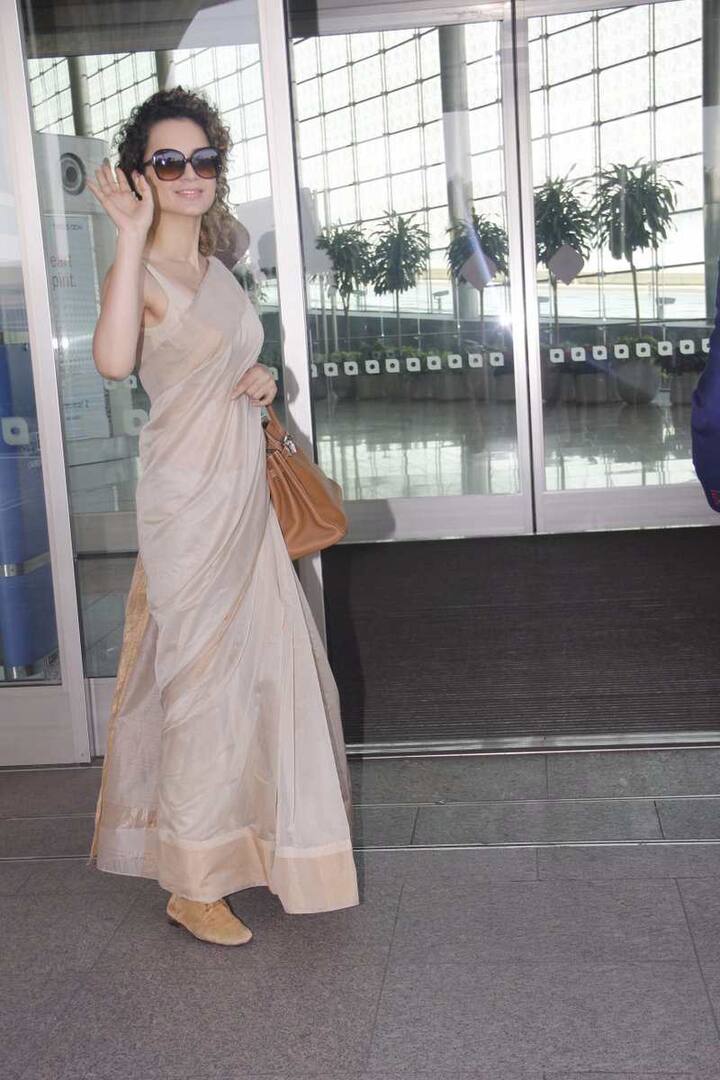 ফ্যাব ইন্ডিয়ার শাড়িতে মুম্বই বিমানবন্দরে কঙ্গনা