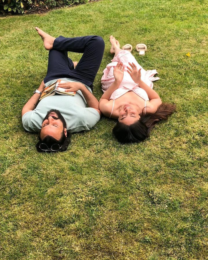 বাগানে সেফ আলি খানের সঙ্গে শুয়ে আছেন করিনা।