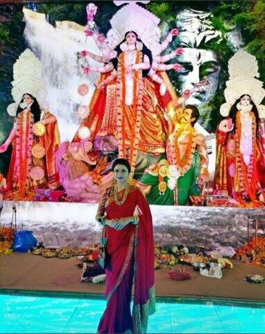 নবমী নিশিতে দুর্গা মণ্ডপে রানি মুখোপাধ্যায় ও ভাগ্যশ্রী