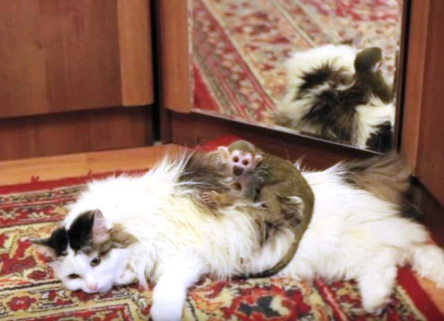 ফেলে গিয়েছে মা, বানর ছানাকে দত্তক নিল বিড়াল!