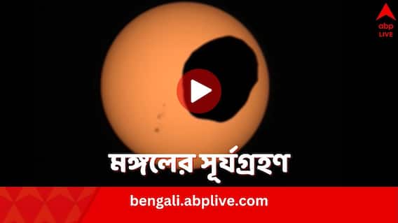 মঙ্গলগ্রহের উপগ্রহ Phobos চাঁদের মতো বৃত্তাকার নয়, বরং দেখতে খানিকটা এবড়োখেবড়ো ডেলার মতো। সূর্যকে অতিক্রম করার সময় তাকে ক্যামেরাবন্দি করা গিয়েছে। সূর্যের সামনেই অবস্থান করছিল Phobos. সেই সময়ই মঙ্গলের জেজেরো গহ্বর থেকে ওই দৃশ্য ক্যামেরাবন্দি করে NASA-র Perseverance Rover. (Solar Eclipse on Mars)