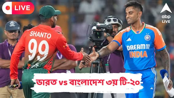 India vs Bangladesh 3rd T20I Live: ৫ ওভারের শেষে ভারতের স্কোর ৬৩/১ ৪ রান করে ফিরলেন অভিষেক। ১৭ বলে ৩৬ রানে ক্রিজে স্যামসন। সঙ্গে সূর্যকুমার যাদব। ৫ ওভারের শেষে ভারতের স্কোর ৬৩/১।