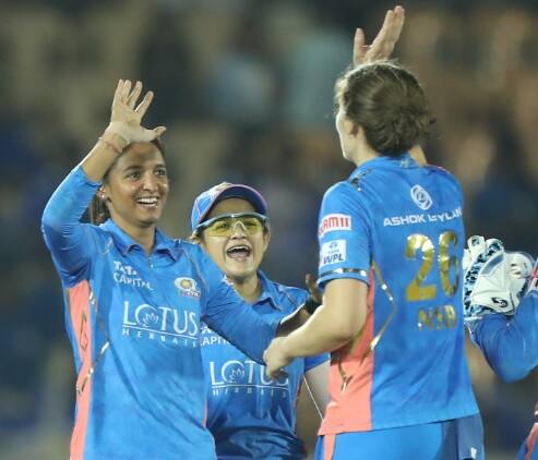 প্রথমে ব্য়াট করতে এসে খাতা খোলার আগেই ফিরে যান হিলি ম্যাথিউজ। তবে অপর ওপেনার ইয়াস্তিকা ভাটিয়া ও ন্যাট স্ক্রিভার মিলে দলের স্কোরবোর্ড এগিয়ে নিয়ে যেতে থাকেন। ইয়াস্তিকা ৪৪ রানের ইনিংস খেলে রান আউট হয়ে ফিরে যান। ন্যাটও ৩৬ রান করেন। এরপর যদিও মিডল অর্ডারে নেমে হরমনপ্রীত দুর্দান্ত অর্ধশতরানের ইনিংস খেলেন। ৩০ বলে ৫১ রান করে প্যাভিলিয়নে ফেরেন হরমনপ্রীত। ৭টি বাউন্ডারি ও ২টো ছক্কা হাঁকান। গুজরাত টাইটান্সের বোলারদের মধ্যে সর্বোচ্চ ৩ উইকেট নেন অ্যাশলে গার্ডনার। ১টি করে উইকেট পান কিন গার্থ, স্নেহ রানা ও তনুজা কানওয়ার।