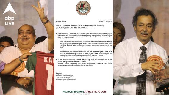 তবে ফুটবল প্রশাসক হিসাবে তিনি একা নন, আরও এক কর্তাকে মোহনবাগান রত্ন দিচ্ছে সবুজ-মেরুন ক্লাব। ২০২৫ সালের জন্য মোহনবাগান রত্ন পাচ্ছেন টুটু বসু। ২০২৬ সালের সেই সম্মান দেওয়া হবে প্রয়াত অঞ্জন মিত্রকে। শনিবার ক্লাবের কর্মসমিতির বৈঠকে এই বিষয়ে চূড়ান্ত সিদ্ধান্ত নেওয়া হয়েছে।