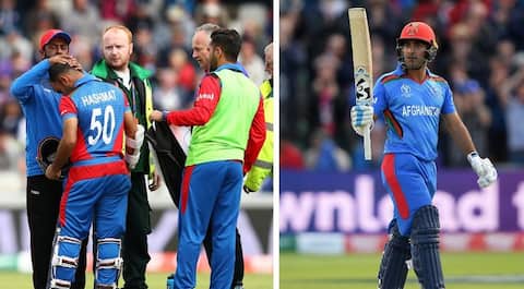 ৯০ কিলোমিটার প্রতি ঘণ্টা, মার্ক উডের ঘাতক বাউন্সারে একেবারে দিশাহীন হয়ে গিয়েছিলেন আফগানিস্তানের ব্যাটসম্যান হাশমতুল্লাহ শাহিদি। হেলমেটে বল লাগা মাত্রই মাটিতে লুটিয়ে পড়েছিলেন আফগান ব্যাটসম্যান। সঙ্গে সঙ্গে ছুটে আসেন আইসিসি-র চিকিৎসক এবং আফগানিস্তান দলের ফিজিও। তাঁরা হাশমতুল্লাহকে মাঠ ছাড়ার পরামর্শ দেন। তবে তাঁদের পরামর্শকে অগ্রাহ্য করেই ব্যাটিং করে যান এই বাঁ হাতি ব্যাটসম্যান। শেষপর্যন্ত তাঁর দল ১৫০ রানে হারলেও ৭৬ রান করে যান হাশমতুল্লাহ শাহিদি।