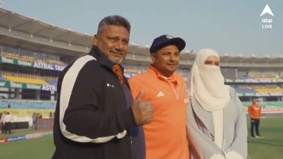 বৃহস্পতিবার রাজকোটে সৌরাষ্ট্র ক্রিকেট সংস্থার স্টেডিয়ামে ভারত ও ইংল্যান্ড (IND vs ENG) তৃতীয় টেস্ট ম্যাচের আগে সরফরাজের হাতে ভারতীয় দলের ক্যাপ তুলে দেন কিংবদন্তি অনিল কুম্বলে। খেলা দেখতে রাজকোটে রয়েছেন সরফরাজের বাবা নওশাদ খান ও স্ত্রী রোমানা। সরফরাজকে টেস্ট ক্যাপ পেতে দেখে তাঁরা তখন কাঁদছেন। আনন্দাশ্রু। তাঁদের দিকে এগিয়ে যান রোহিত। অভিনন্দন জানান সরফরাজের বাবা ও স্ত্রীকে।