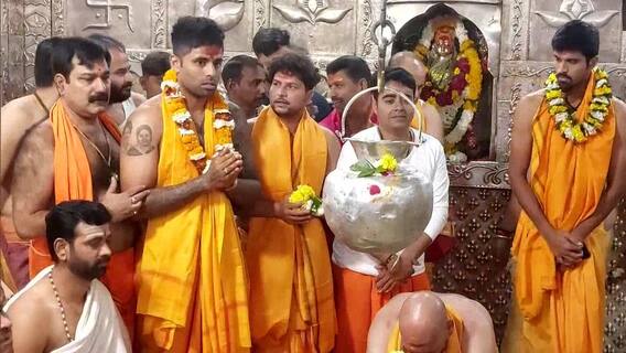 ইনদওর: পথ দুর্ঘটনায় গুরুতর জখম হয়ে মাঠের বাইরে ঋষভ পন্থ ( Rishabh Pant)। সতীর্থের দ্রুত আরোগ্য কামনায় উজ্জ্বয়িনীর মহাকালেশ্বর (Mahakaleswar Temple) মন্দিরে গিয়ে পুজো দিলেন সূর্যকুমার যাদব, কুলদীপ যাদব এবং ওয়াশিংটন সুন্দর।