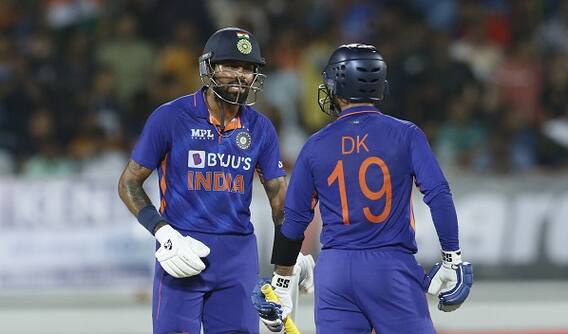 সেখান থেকেই ডিকে ও হার্দিকের পাল্টা লড়াই। পঞ্চম উইকেটে দ্রুত ৬৫ রান যোগ করে ভারতকে ম্যাচে ফেরান দুই তারকা। ডিকে ৯টি চার ও জোড়া ছক্কা মেরেছেন। ৩টি চার ও ৩টি ছক্কা মারেন হার্দিক।