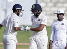 গ্রস আইলেট: তৃতীয় টেস্টের পঞ্চম দিনে ওয়েস্ট ইন্ডিজের সামনে জয়ের জন্য ৩৪৬ রানের লক্ষ্যমাত্রা রাখল ভারত। জিততে হলে ৮৭ ওভারের মধ্যে এই রান তুলতে হবে জেসন হোল্ডারের দলকে। পরিস্থিতির বিচারে যা প্রায় অসম্ভব। বরং ভারতীয় বোলাররা প্রথম ইনিংসের মতো পারফরম্যান্স দেখাতে পারলে এই টেস্ট জিতে সিরিজে ২-০ এগিয়ে যাওয়ার সুযোগ থাকছে। ৩ উইকেটে ১৫৭ রান নিয়ে এদিন খেলা শুরু করে ভারত। শুরু থেকে দ্রুত রান তোলাই লক্ষ্য ছিল গতকালের দুই অপরাজিত ব্যাটসম্যান অজিঙ্ক রাহানে ও রোহিত শর্মার। কিন্তু দিনের দ্বিতীয় বলেই ফিরে যান রোহিত। যদিও তাতে রানের গতি কমেনি। দ্রুত রান তুলতে গিয়ে ফিরে যান ঋদ্ধিমান সাহা (১৪), রবীন্দ্র জাদেজারা (১৬)। রবিচন্দ্রন অশ্বিন (১) ফিরে যেতেই ইনিংসের সমাপ্তি ঘোষণা করেন ভারতের অধিনায়ক বিরাট কোহলি। রাহানে ৭৮ রানে অপরাজিত থাকেন। ভারতের রান ৭ উইকেটে ২১৭। আজ ৯ ওভারে ৬০ রান করেছে ভারত। ব্যাটসম্যানরা নিজেদের কাজ করে দিয়েছেন। এবার পরীক্ষা ভারতের বোলারদের। ৮৭ ওভারের মধ্যে তাঁরা ক্যারিবিয়ানদের অলআউট করে দিতে পারেন কি না সেটাই এখন দেখার।