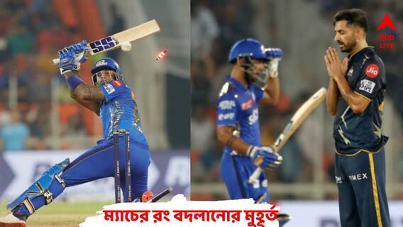২৩৪ রানের বিশাল লক্ষ্যমাত্রা। শুরু থেকেই বিধ্বংসী মেজাজে ব্য়াটিং করতে হত মুম্বই ইন্ডিয়ান্সকে। বিশেষ করে রোহিত-ঈশান জুটিকেই এদিন সবচেয়ে বেশি সময় ক্রিজে দরকার ছিল। কিন্তু গুজরাতের ব্যাটিংয়ের সময় জর্ডনের কনুইয়ের আঘাতে এতটাই চোট পান বাঁহাতি মুম্বই ওপেনার, যে ব্যাট হাতে নামতেই পারলেন না তিনি। রোহিতের সঙ্গে ওপেনে নেমেছিলে নেহাল ওয়াধেরা। কিন্তু কাজের কাজ কিছুই করতে পারলেন না তিনি। ইনিংসের প্রথম ওভারেই শামির বলে ফিরে গেলেন আউট হয়ে মাত্র ৪ রান করে। রোহিত শর্মাও ৮ রান করে শামির দ্বিতীয় শিকার হন। মুম্বইয়ের জন্য যে কাজটা একপ্রকার অসম্ভব, তার আন্দাজ পাওয়া গিয়েছিল তখনই। তবুও সূর্যকুমার যাদব ক্রিজে ছিলেন বলে কিছুটা আশা ছিল। তিলক ভার্মা ও সূর্যকুমার যাদবের ব্য়াটিং কিছুটা আশার আলো দেখিয়েছিল পাঁচবারের আইপিএল চ্যাম্পিয়ন দলটিকে। ১৪ বলে ৪৩ রানের ইনিংস খেলে রশিদ খানের বলে ফিরে যান তিলক। নিজের ইনিংসে পাঁচটি বাউন্ডারি ও ৩টি ছক্কা হাঁকান তিনি। অন্যদিকে সূর্যকুমার যাদব ৩৮ বলে ৬১ রান করেন। তিনি ৭টি বাউন্ডারি ও ৩টি ছক্কা হাঁকান। তবে জয় এনে দিতে পারেননি তাঁরা কেউই। লোয়ার অর্ডার আর কেউই রান পাননি। ১৮.২ ওভারে ১৭১ রানে অল আউট হয়ে যায় মুম্বই ইন্ডিয়ান্স।