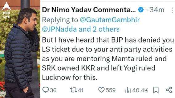গম্ভীরের পোস্টের কমেন্ট সেকশনে একজন সোশ্যাল মিডিয়ায় লেখেন, 'আমি শুনেছি পার্টি বিরোধী কাজকর্ম করায় এমনিতেই বিজেপি গম্ভীরকে আসন্ন লোকসভা ভোটের টিকিট দিত না। যোগী রাজ্যের আইপিএল দল লখনউ সুপার জায়ান্টস ছেড়ে মমতা শাসিত রাজ্যে শাহরুখ খানের মালিকানাধীন কেকেআরের মেন্টর হয়েছেন বলে।'