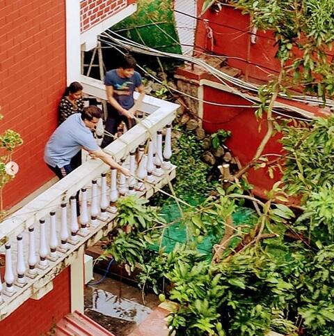 ঘূর্ণিঝড়ে হেলে পড়ল বাড়ির আমগাছ, বারান্দা থেকে ঝুঁকে পড়ে টেনে তুললেন সৌরভ