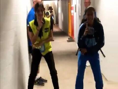 মেলবোর্ন: মহিলাদের টি-২০ বিশ্বকাপে ভারতীয় দল দারুণ ছন্দে। প্রথম তিনটি ম্যাচই জিতে সেমি-ফাইনালে উঠে গিয়েছে ভারত। স্বভাবতই দলের সদস্যরা খোশমেজাজে আছেন। স্টেডিয়ামে এক মহিলা নিরাপত্তারক্ষীর সঙ্গে জেমাইমা রডরিগেজের নাচের মাধ্যমে সেটাই প্রতিফলিত হল। আজ ম্যাচ শুরু হওয়ার আগেই নাচতে দেখা যায় ভারতের এই মিডল অর্ডার ব্যাটসম্যান ও নিরাপত্তারক্ষীকে। সোশ্যাল মিডিয়ায় এই ভিডিও ভাইরাল।