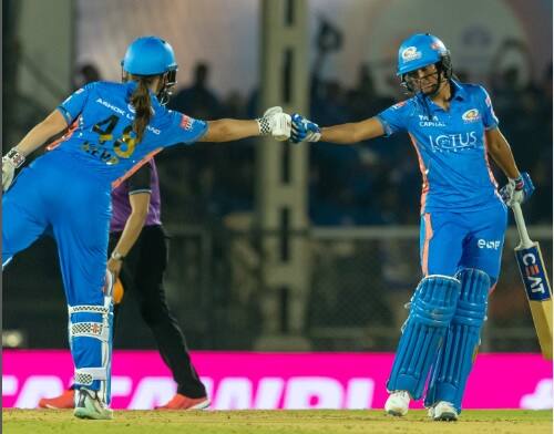 প্রথমে ব্য়াট করতে এসে খাতা খোলার আগেই ফিরে যান হিলি ম্যাথিউজ। তবে অপর ওপেনার ইয়াস্তিকা ভাটিয়া ও ন্যাট স্ক্রিভার মিলে দলের স্কোরবোর্ড এগিয়ে নিয়ে যেতে থাকেন। ইয়াস্তিকা ৪৪ রানের ইনিংস খেলে রান আউট হয়ে ফিরে যান। ন্যাটও ৩৬ রান করেন। এরপর যদিও মিডল অর্ডারে নেমে হরমনপ্রীত দুর্দান্ত অর্ধশতরানের ইনিংস খেলেন। ৩০ বলে ৫১ রান করে প্যাভিলিয়নে ফেরেন হরমনপ্রীত। ৭টি বাউন্ডারি ও ২টো ছক্কা হাঁকান। গুজরাত টাইটান্সের বোলারদের মধ্যে সর্বোচ্চ ৩ উইকেট নেন অ্যাশলে গার্ডনার। ১টি করে উইকেট পান কিন গার্থ, স্নেহ রানা ও তনুজা কানওয়ার।
