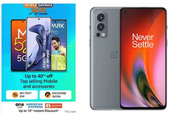 2-OnePlus Nord 2 5G (Gray Sierra, 8GB RAM, 128GB Storage)Amazon-এর 5G ফোন ডিলে OnePlus Nord 2 5G 29,999 টাকায় পাওয়া যাচ্ছে। কোটাক ব্যাঙ্ক কার্ডের মাধ্যমে পেমেন্ট করলে ইনস্ট্যান্ট 2 হাজার ছাড় রয়েছে ফোনে। আপনি এই ফোনে 14,950 টাকা পর্যন্ত এক্সচেঞ্জ অফার নিতে পারেন৷ এই ফোনটিতে 32MP প্রাইমারি ক্যামেরা সহ Sony IMX 766 50MP + 8MP + 2MP AI ট্রিপল ক্যামেরা রয়েছে৷ এছাড়াও এতে সাম্প্রতিক ক্যামেরা মোড পাবেন। এই ফোনের বিশেষত্ব হল, এর ক্যামেরার অনেক ফিচার রয়েছে। এটি অনেক ভালো মানের ক্যামেরা দিয়ে থাকে। এই ফোনের ক্যামেরায় আল্ট্রা ক্লিয়ার 50 এমপি ফটোগ্রাফি, এআই ফটো এনহান্সমেন্ট প্রিসেট, এআই ভিডিও এনহ্যান্সমেন্ট, নাইটস্কেপ আল্ট্রা, অটো এইচডিআর, পোর্ট্রেট মোড, প্রো-মোড, আল্ট্রা-ওয়াইড মোডের মতো বৈশিষ্ট্য রয়েছে। সামনের ক্যামেরায় ডুয়াল ভিউ ভিডিও, গ্রুপ শট 2.0, ফেস আনলক, এইচডিআর, স্ক্রিন ফ্ল্যাশের বৈশিষ্ট্য রয়েছে। এই ফোনে MediaTek Dimensity 1200-AI প্রসেসর রয়েছে, যার কারণে এই ফোনটি খুব দ্রুত চলে। ফোনে UFS 3.1 স্টোরেজ সিস্টেমে 12GB RAM ও 256GB রয়েছে। ফোনে ডুয়াল সিম অপশন পাবেন।যা ডুয়াল 5G সিম সাপোর্ট করে। ফোনে ডুয়াল সেল 4500mAH লিথিয়াম-আয়ন ব্যাটারি রয়েছে। এছাড়াও এই ব্যাটারি দ্রুত চার্জিং সাপোর্ট করে। এই ফোনের স্ক্রিন 6.43 ইঞ্চি ও ডিসপ্লে 90Hz Fluid AMOLED এটি sRGB, Display P3 সাপোর্ট করে। ফোনে Android 11 ভিত্তিক OxygenOS 11.3 অপারেটিং সিস্টেম রয়েছে।