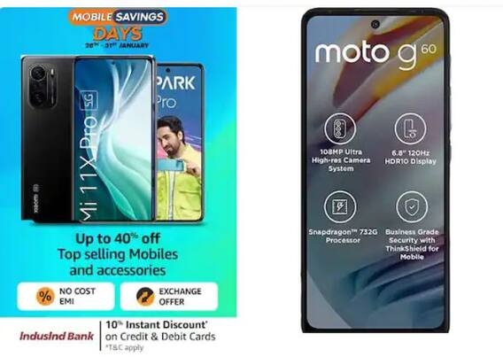 Amazon Offer On 108MP Camera phone: আর দেরি করলে মিস করবেন। ৩১ জানুয়ারি পর্যন্ত পাবেন এই অফার। অ্যামাজনের মোবাইল সেলে, 108MP ক্যামেরা সহ পাবেন এই দুই ফোন। খুবই কম দামে পাওয়া যাচ্ছে MI 10T Pro 5G ও MOTOROLA G60। সেরা ক্যামেরা সহ এই ফোনগুলি সেলে ২০ হাজার টাকারও কম দামে পাওয়া যাবে। সঙ্গে রয়েছে এক্সচেঞ্জ অফার ও ক্যাশব্যাকের সুবিধা।