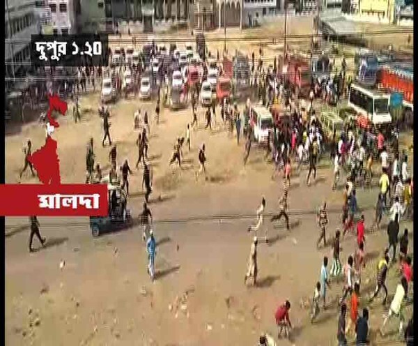 পুলিশকে লক্ষ্য করে বোমা, ইট। পাল্টা লাঠিচার্জ। রণক্ষেত্র মালদার কালিয়াচক।