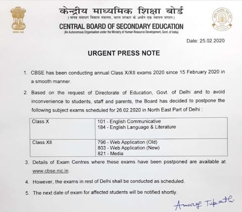 পূর্ব দিল্লির দিল্লির ভাই পরমানন্দ বিদ্যা মন্দির স্কুলের দশম ও দ্বাদশ শ্রেণির কিছু ছাত্র আদালতে আবেদন জানায়, তাদের সিবিএসই পরীক্ষার কেন্দ্র স্কুল থেকে ১৬ কিমি দূরে এবং তা চান্দু নগর রোডে অবস্থিত। এই এলাকা সংঘর্ষের কারণে বিপর্যস্ত। পড়ুয়ারা কোর্টের কাছে আবেদন জানায়, যাতে বোর্ড তাদের অন্য কোনও কেন্দ্রে পরীক্ষা দেওয়ার ব্যবস্থা করে। আদালতও বোর্ডকে বিষয়টি বিবেচনা করে দেখার নির্দেশ দিয়েছে। বুধবার এই মামলার ফের শুনানি।. উত্তর-পূর্ব দিল্লিতে আজও বন্ধ স্কুল, স্থগিত ওই এলাকার সিবিএসই পরীক্ষা