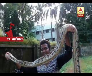 পশ্চিম বর্ধমানের জামুড়িয়া এলাকায় রাস্তার ধারের ঝোপ থেকে উদ্ধার ১২ ফুটের অতিকায় পাইথন