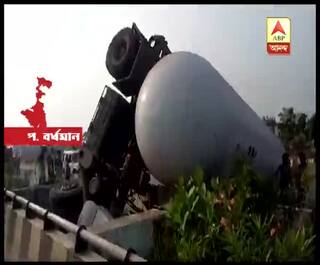 কাঁকসায় জাতীয় সড়কে নিয়ন্ত্রণ হারিয়ে উল্টে গেল গ্যাস ট্যাঙ্কার, গুরুতর আহত ট্যাঙ্কার চালক ও খালাসি