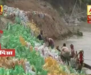 নদিয়ার শান্তিপুরে ফুলিয়া বিহারিয়া মঠ পাড়ায় ভাগিরথীতে ভাঙন। আশঙ্কায় স্থানীয় বাসিন্দারা। অভিযোগ, প্রতিবার বর্ষায় ভাঙন দেখা দেয়। প্রশাসনের তরফে স্থায়ীভাবে মেরামত করা হয় না। সম্প্রতি ওই এলাকায় নতুন করে ভাঙ্গন দেখা দেয়। প্রশাসনের তরফে বালির বস্তা ফেলে ভাঙন রোধের ব্যবস্থা করা হয়। যে এলাকায় বাঁধ দেওয়ার কাজ চলছে, তার থেকে কয়েক মিটার দূরে শনিবার রাতে ব্যাপক ভাঙন শুরু হয়। এর ফলে প্রায় এক বিঘা জমি ভাগিরথীর গর্ভে তলিয়ে গিয়েছে। ঊর্ধ্বতন কর্তৃপক্ষকে জানানো হয়েছে বলে দাবি বেলঘরিয়া ২ নম্বর গ্রাম পঞ্চায়েতের।