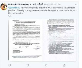 রাজ্যপাল ধনকড়কে চিঠি পার্থর, সঙ্গে ট্যুইটও