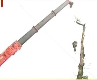 উমপুনের তাণ্ডবের ছদিন পর সল্টলেকের সিএ ব্লক থেকে ক্রেন দিয়ে সরানো হল বিপজ্জনকভাবে হেলে পড়া গাছ