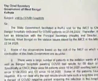পশ্চিমবঙ্গে অন্য রোগের ক্ষেত্রে মৃত্যুর কারণ খতিয়ে দেখতেও কি অডিট কমিটি আছে? বাংলায় কেন এত কম করোনা পরীক্ষা? রিপিট টেস্ট ও ফার্স্ট টেস্টের সংখ্যা কত? এরকম এক গুচ্ছ প্রশ্ন তুলে রাজ্যের মুখ্য সচিবকেকে জোড়া চিঠি পাঠালো কলকাতায় আসা কেন্দ্রীয় প্রতিনিধি দল। একটি চিঠিতে রাজ্যের করোনা চিকিৎসার পরিকাঠামো নিয়ে রয়েছে কড়া পর্যবেক্ষণ, অন্যটিতে প্রশ্ন তোলা হয়েছে করোনায় মৃত্যু খতিয়ে দেখতে তৈরা হওয়া অডিট কমিটি নিয়ে।