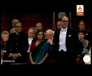 সুইডেনের স্টকহোমের কনসার্ট হলে নোবেলপ্রদান। অর্থনীতিতে নোবেল পেলেন অভিজিত্ বিনায়ক বন্দ্যোপাধ্যায়। নোবেল পেলেন অভিজিৎ পত্নী এস্থার ডুফলো। কালো গলাবন্ধর সঙ্গে ধুতি পাঞ্জাবি পরেছেন অভিজিত্। শাড়ি পরে নোবেলের মঞ্চে এস্থার।একইসঙ্গে অর্থনীতিতে এদিন নোবেল পেলেন মাইকেল ক্রেমারও।