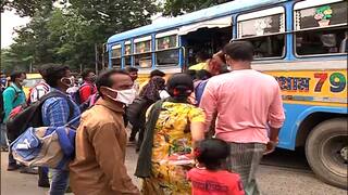 রবিবার ছুটির দিনেও ধর্মতলা চত্বরে বাসের জন্য লাইন। আজও রাস্তায় বেসরকারি বাসের সংখ্যা কম। অভিযোগ, এই সুযোগে বেশি ভাড়া হাঁকছেন ট্যাক্সিচালকদের একাংশ। করোনা আবহে ৫০ শতাংশ যাত্রী পরিবহণ ও একইসঙ্গে পেট্রোলের মূল্যবৃদ্ধি। জোড়া ফলায় এই দুর্ভোগ বলে মনে করছেন বাসযাত্রীরা।