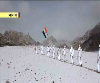 ১৭ হাজার ফুট উচ্চতায় ৭১তম প্রজাতন্ত্র দিবস পালন। বরফ ঢাকা লাদাখে মাইনাস ২০ ডিগ্রি সেলসিয়াসের মধ্যে দাঁড়িয়ে জাতীয় পতাকা উত্তোলন করলেন ইন্দো-টিবেটান বর্ডার পুলিশ, আইটিপিবি-র আধিকারিকরা।