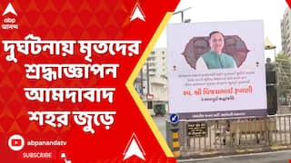 Plane Crash: বিজয় রূপানী সহ মৃতদের ছবি হোডিংয়ে লাগিয়ে শ্রদ্ধাজ্ঞাপন আমদাবাদ শহর জুড়ে