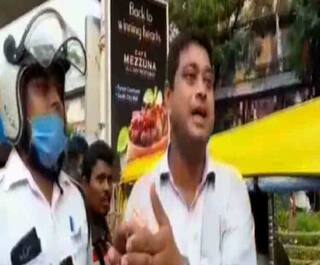 শুরু হয় বচসা। তাঁকে ধাক্কা দেওয়া হয় বলে অভিযোগ ট্রাফিক সার্জেন্টের।