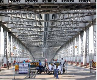 লকডাউনে হাওড়া ব্রিজের মাঝে ব্যারিকেডের, গাড়ির দেখা নেই, কড়া নজরদারি