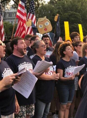 হোয়াইট হাউসের বাইরে গানের দলের ট্রাম্প-বিরোধী বিক্ষোভ